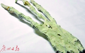 《每日邮报》《镜报》等英国媒体8日报道,研究人员拒绝透露这只神秘“大手”确切发现位置,只说在沙漠地区的隧道里。“大手”有三根手指,每根至少长8英尺(合20厘米)。研究人员在它附近还找到一个瘦长的头盖骨,类似外星人脑壳。