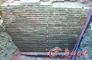 专家介绍,广州在民国时期,特别是1918年广州市政公所成立以后,开始大规模拆城墙筑马路,明清广州城墙基本上被拆除,仅存越秀山上1000多米长的一段。根据此次发掘判断,明初扩建城墙时已经将此段宋代城墙上部推倒,留下城墙下部,并且将城内侧地面填高(至现存宋代城墙顶面),将宋代城墙外壁包边砖墙大部分拆除,再将城墙略向北扩,修筑广州城西北段。明清以后,这段宋代城墙已经埋藏在地下,因此得以保留。根据发掘,推断宋明城墙大致沿今市一大道向东西两侧延伸。