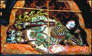 由 renwen 提交于 周一, 2018/12/24 - 23:52 罗马土豪墓 浑身金银珠宝(图) 来源:广州日报 日期:2014-11-26 墓主全身穿金戴银。 广州日报讯 近日意大利罗马一古代墓穴被发现,墓穴埋葬了多位“土豪”,每具尸体都只剩下骸骨,但几乎全身披满金银珠宝,而且被证实全是真货。目前这个集体墓葬埋葬的土豪身份还不清楚。